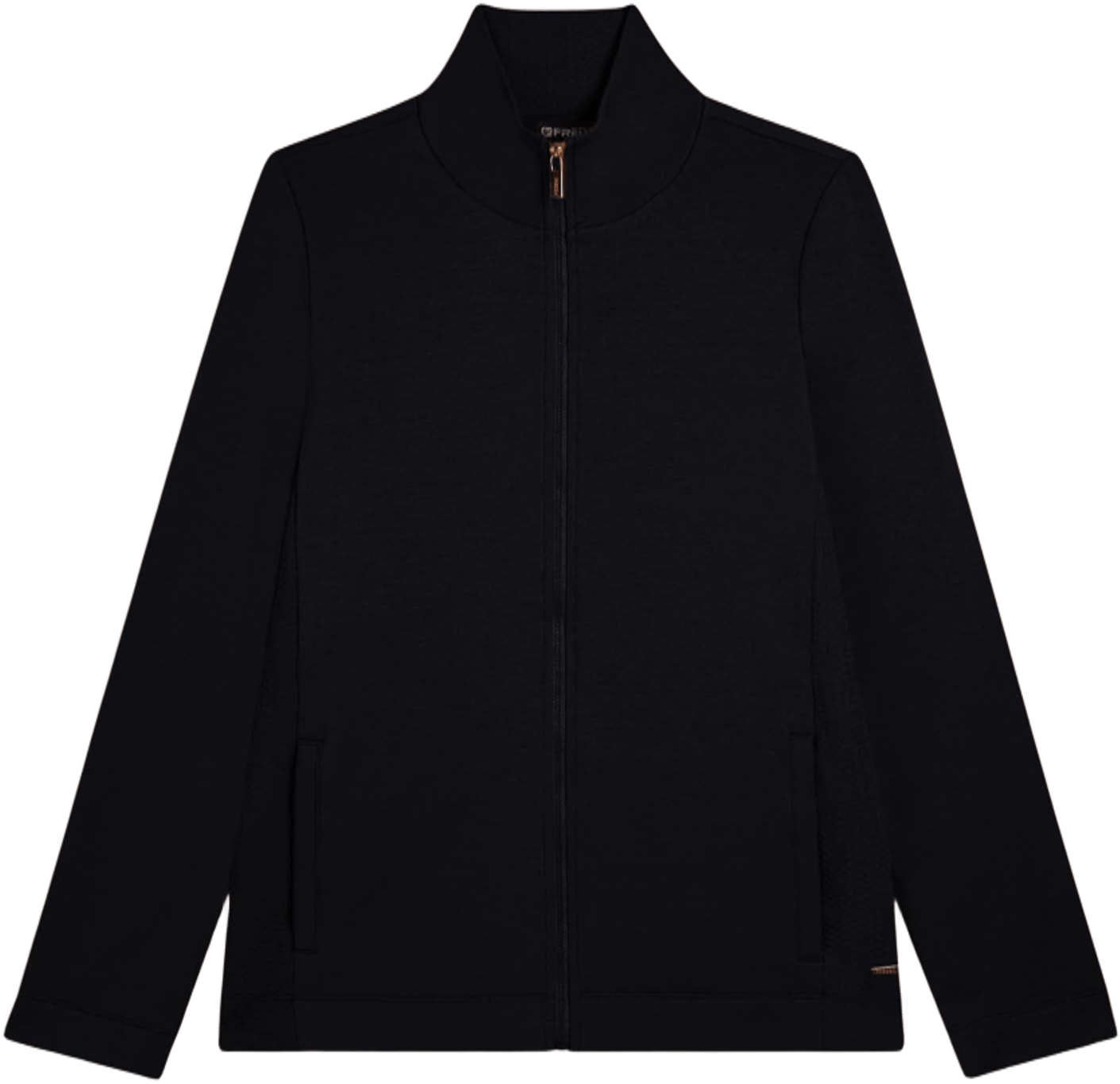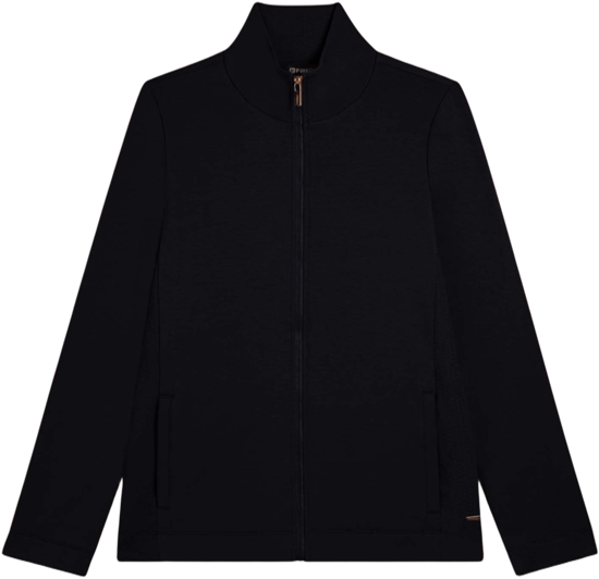 Felpa da donna dalla vestibilità regolare, che combina calore e morbidezza della felpa modal garzata elasticizzata con raffinati inserti laterali e interno collo in felpa tecnica a doppio strato dalla texture a micro-trecce. La chiusura full-zip, il collo alto e le tasche interne a filetto offrono praticità ed eleganza quotidiana. Placchetta con logo FREDDY sul cuore.