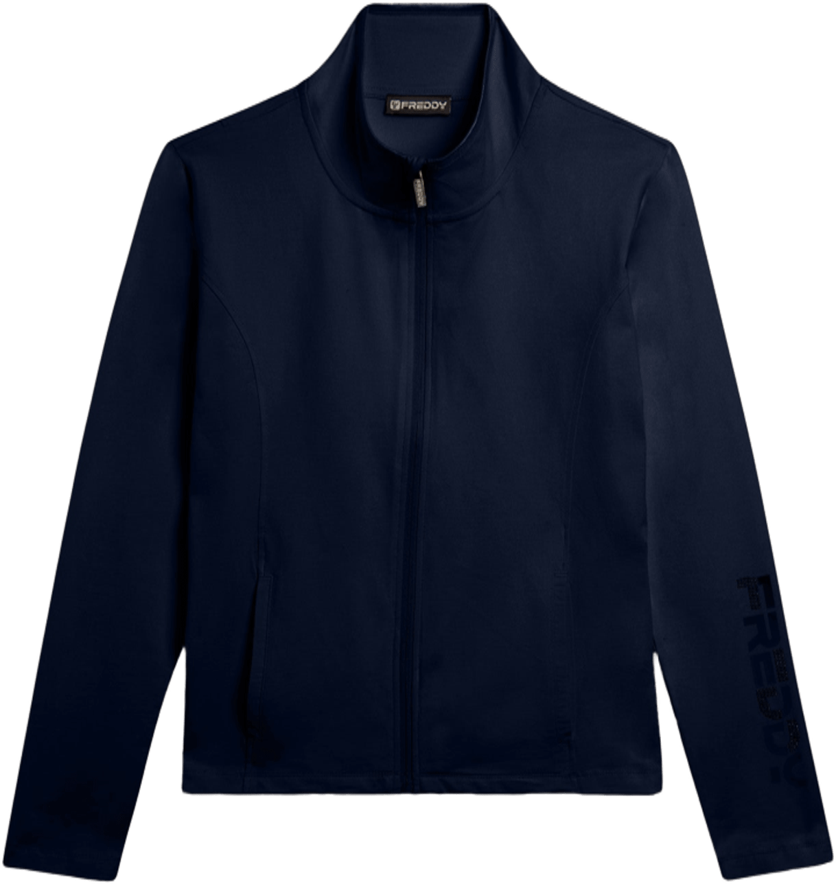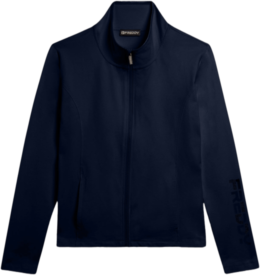 Felpa con zip e collo alto bordato da un nastro elastico lucido, ideale per il tempo libero dinamico. La vestibilità regular e il fondo dritto con spacchi laterali offrono comfort e praticità. Il tono rosa chiaro del piccolo logo FREDDY in perline e del grande logo olografico sul fondo manica aggiungono un tocco romantico. Realizzata in jersey pesante stretch di cotone, è perfetta per gli sport di bassa intensità.