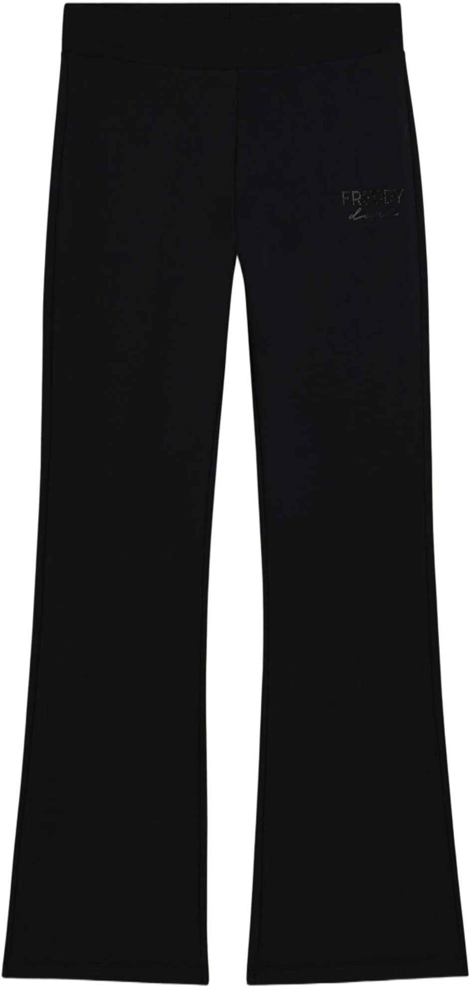 Pantaloni dal taglio regolare con fondo a zampa, realizzati in felpa garzata elasticizzata per una vestibilità fluida ma avvolgente. La vita è regular e il fianco sinistro è decorato dal logo FREDDY in borchie. Il modello è privo di tasche.