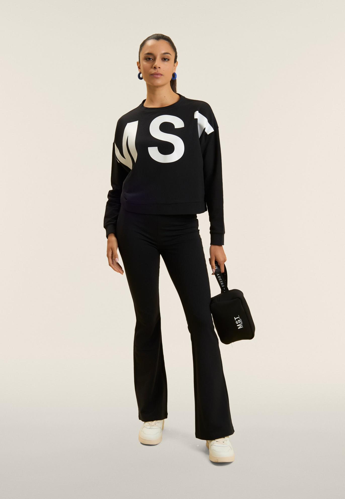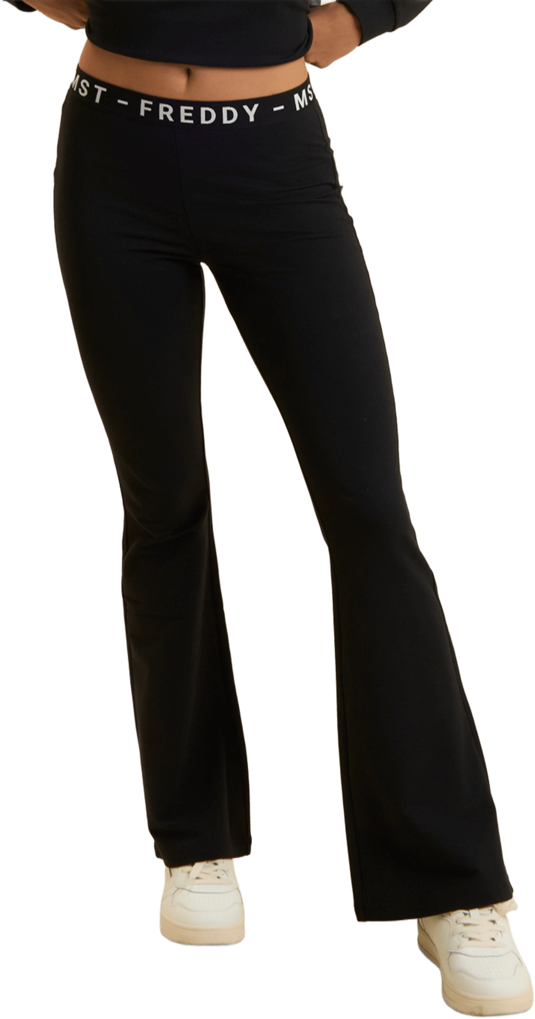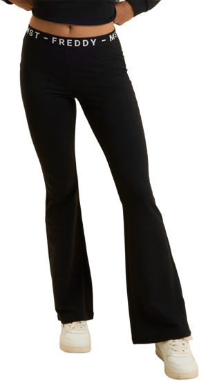 Pantaloni sportivi dal design audace, con vestibilità aderente e fondo super flare che esalta la silhouette. Realizzati in french terry elasticizzato di cotone, garantiscono comfort e libertà di movimento, mentre la vita regular è rifinita con una fascia elastica jacquard logata FREDDY MST, che aggiunge un dettaglio distintivo. Il design minimalista è pensato per un look sportivo e moderno, perfetto per chi cerca un equilibrio tra funzionalità ed eleganza.