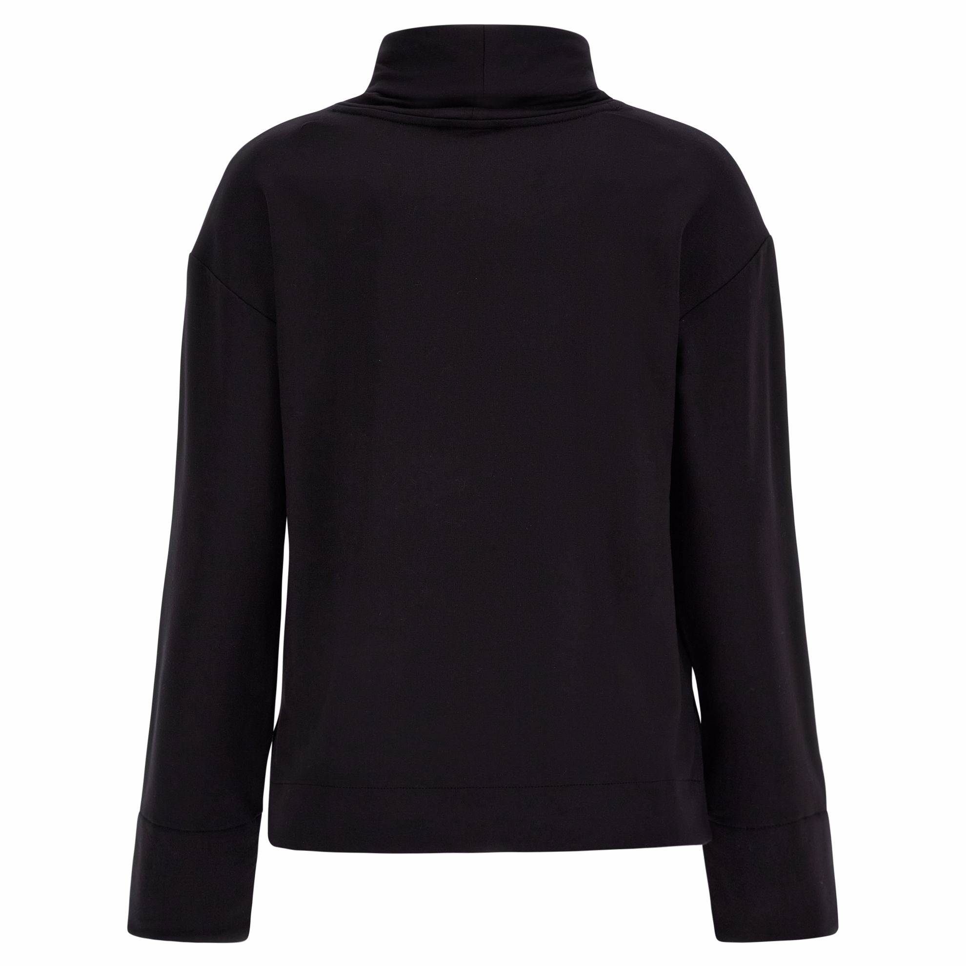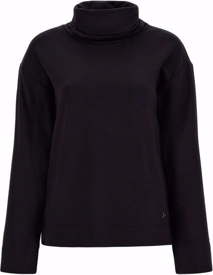 Felpa con collo ad anello e maniche ampie realizzata in felpa viscosa elasticizzata, un tessuto caratterizzato da morbidezza, flessibilità e lucentezza.Il modello veste regolare ed ha maniche leggermente svasate con spalla scesa, fondo dritto, drappeggio sui fianchi e logo in oro rosa applicato sul fondo sinistro.La vestibilità che segue morbidamente le linee del corpo si unisce all’avvolgente morbidezza del tessuto nel dar vita a un capo votato alla comodità e alla libertà di movimento in ogni occasione.