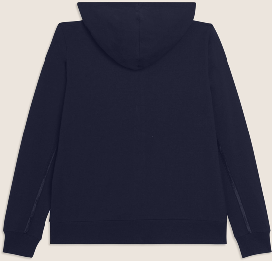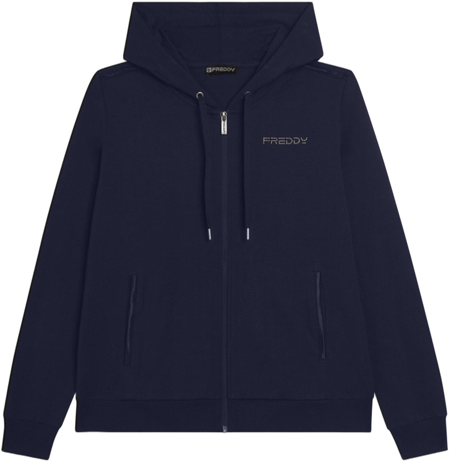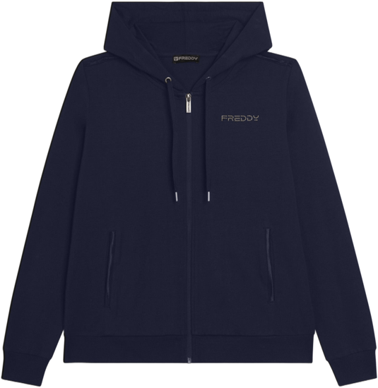 Felpa con cappuccio foderato e zip, dal design moderno e funzionale. La vestibilità regular e il fondo con fascia in costina offrono comfort, mentre il cappuccio con coulisse e le maniche lunghe con polsini in costina aggiungono praticità. Il logo FREDDY in perline rosa chiaro sul cuore e gli inserti elastici lucidi sulle spalle creano un dettaglio elegante. Realizzata in jersey pesante stretch di cotone, perfetta per il tempo libero e le attività leggere.