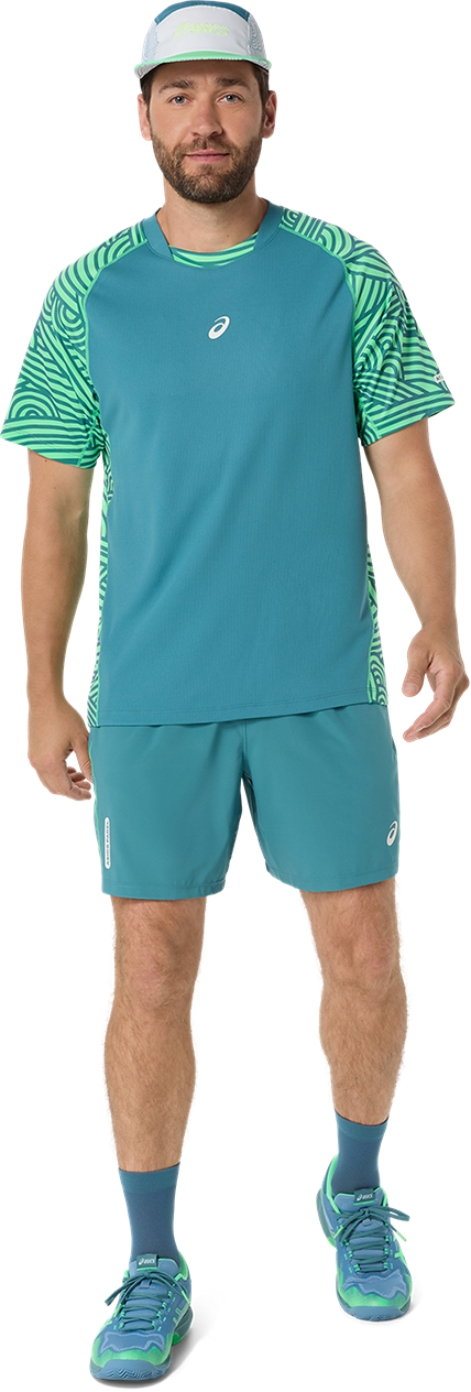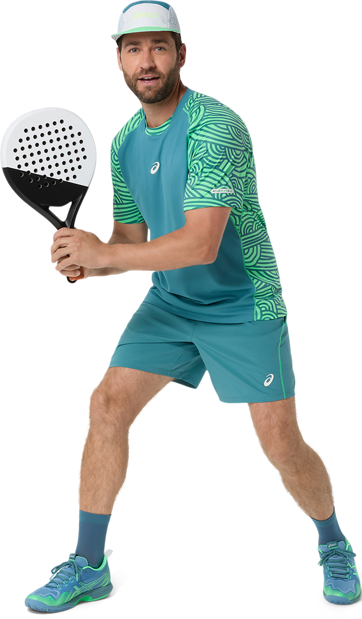 T-SHIRT A MANICA CORTA DA PADEL DA UOMO ASICS PADEL COURT ALL OVER PRINT 2041A385 300