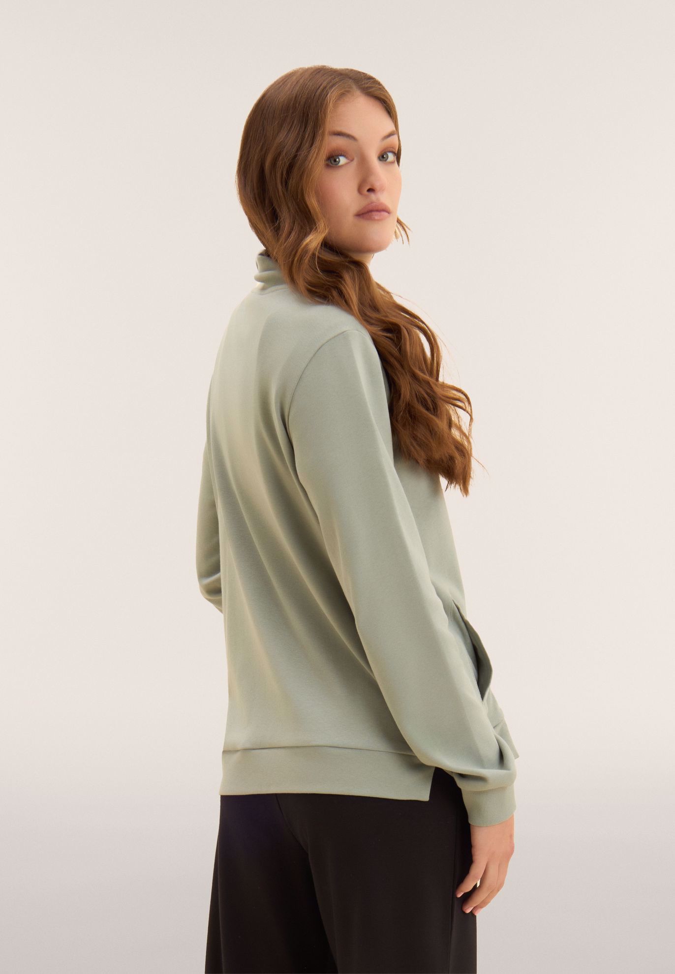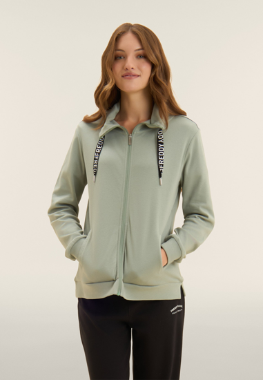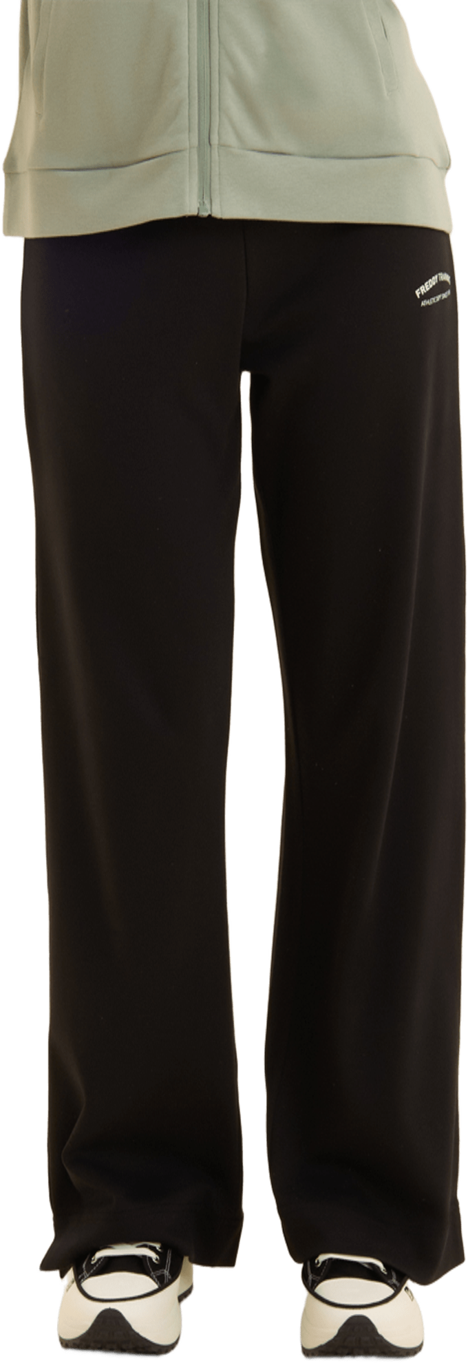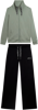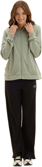 Tuta confortevole in interlock di 100% cotone, naturalmente morbido e traspirante. Felpa con zip tono su tono, collo alto con coulisse logata, spacchi laterali e maniche con polsini. I pantaloni wide leg hanno vita regular con coulisse logata e fondo con piccoli spacchi laterali. Logo FREDDY glitter bianco su manica e fianco. Tasche interne sulla felpa.